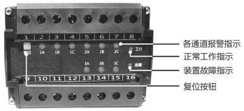 檢測各路運(yùn)行狀態(tài),當(dāng)任何一路保護(hù)時,故障燈點亮。